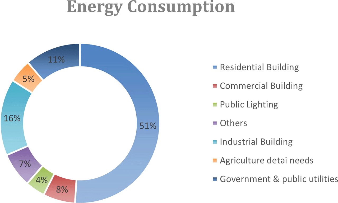 Worldwide, the construction sector stands as a major energy user, responsible for consuming more than 40% of the total energy supply, with an average annual increase of 1.5% from 2012 to 2040.1 In Egypt, due to the rapid growth and higher living standards, residential buildings consume over half of the country’s electricity2 as shown in Figure 1.
