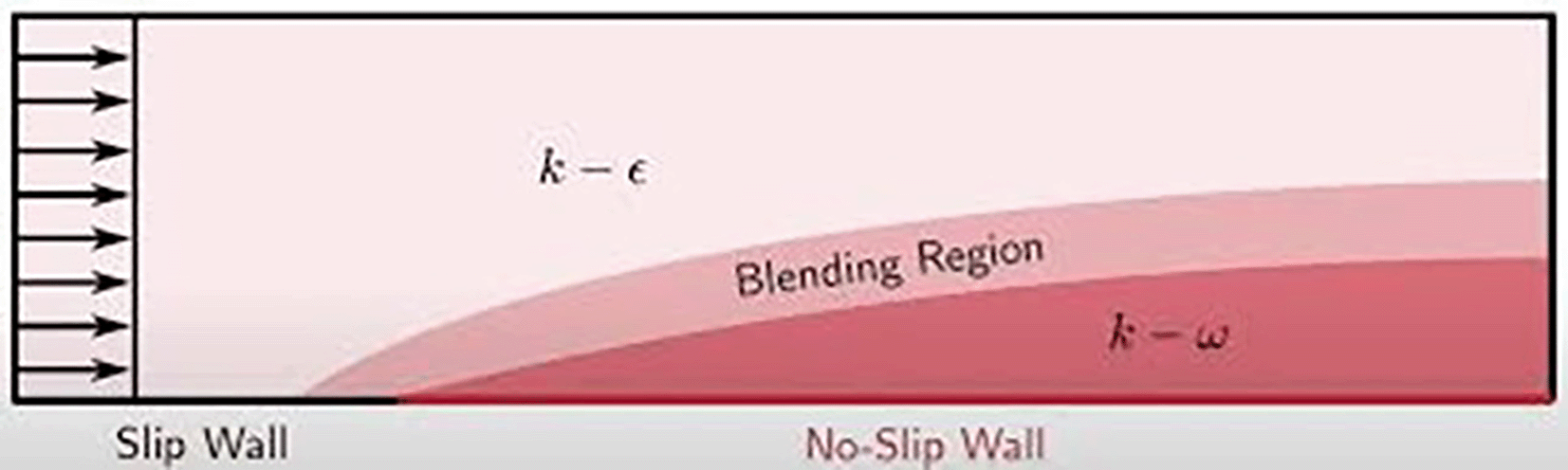 • Away from the Wall: Further away from the wall, F1 decreases towards 0, blending towards the k-ϵ model, which is better suited for free-stream turbulence.