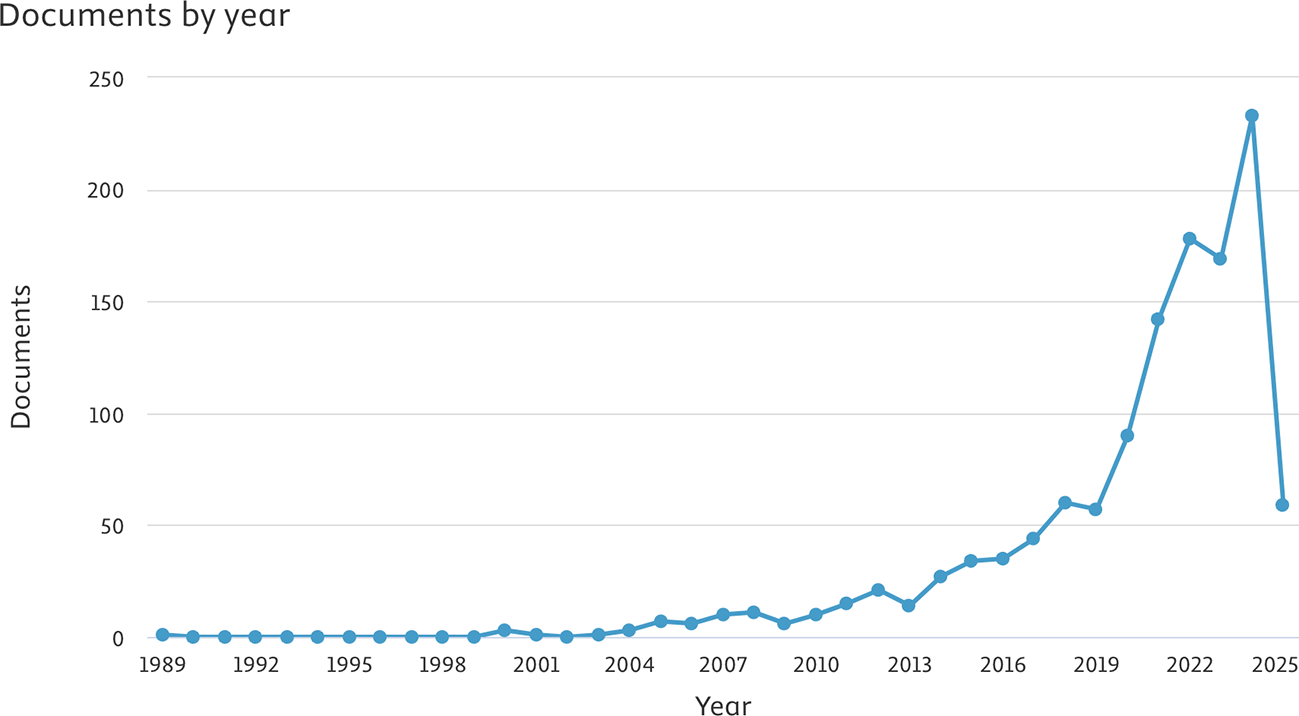 A comprehensive search was conducted using the Scopus database to identify relevant publications from inception through April 2025. Bibliometric techniques were applied to analyze co-authorship networks, annual publication trends, institutional and international collaborations, keyword co-occurrence, and citation metrics. VOSviewer and the Bibliometrix package in R were utilized for data visualization and network mapping.