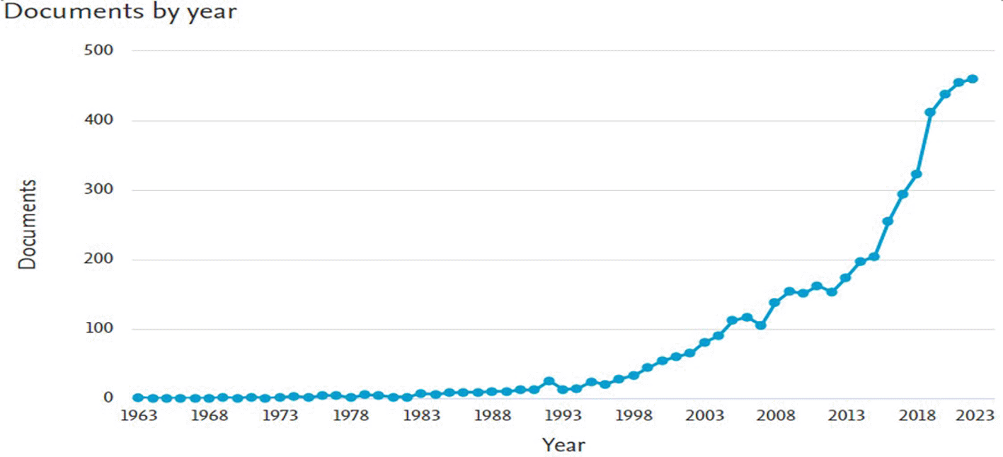 The results of this study show that the number of documents related to Safety Performance has experienced a significant increasing trend over time. Based on the data processed from Scopus, the graph of document distribution per year ( Figure 2) shows two main patterns.