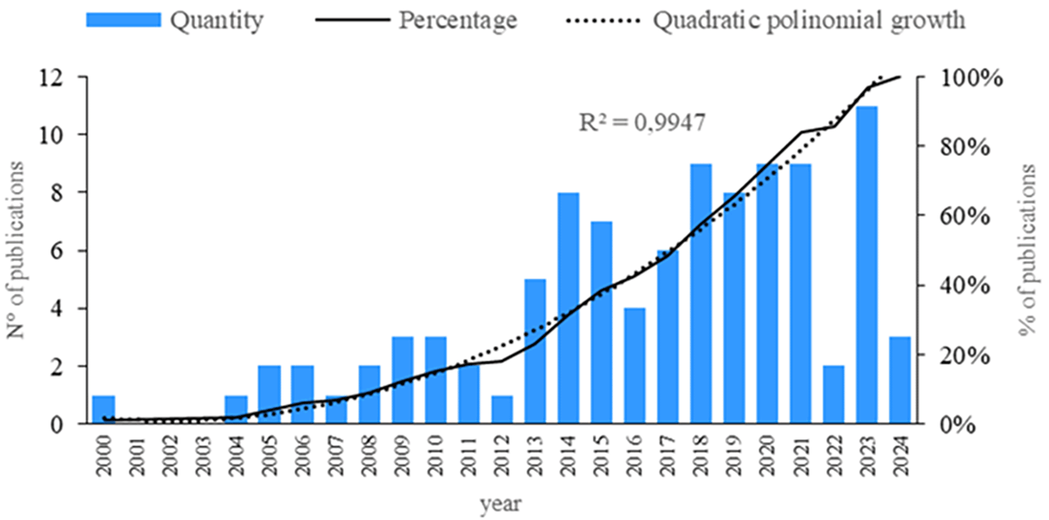 First, an analysis of publications by year is conducted. As shown in Figure 2, a steady increase has been observed in recent years regarding the subject of this research. However, a decrease is noted in 2022, followed by an increase in 2023. Therefore, since 2013, there has been a continuous rise in the number of publications. Additionally, an analysis of quantity, quality, and structural indicators is performed.