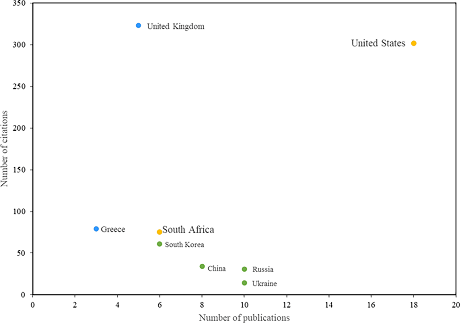 The countries that have had the greatest impact on research in information security education are presented below (see Figure 5). The United States stands out in the first place, both in terms of the number of citations and the number of publications related to this topic. Notable among these is the study by Rowe et al. (Rowe et al., 2011), which analyzes the crucial role of cybersecurity in IT education and argues for the integration of this topic into IT programs. Also noteworthy is the study by Conklin (Conklin, 2006), conducted in the United States, which proposes an active learning solution for a capstone course designed to enhance students’ competencies in cyberdefense and information security education.