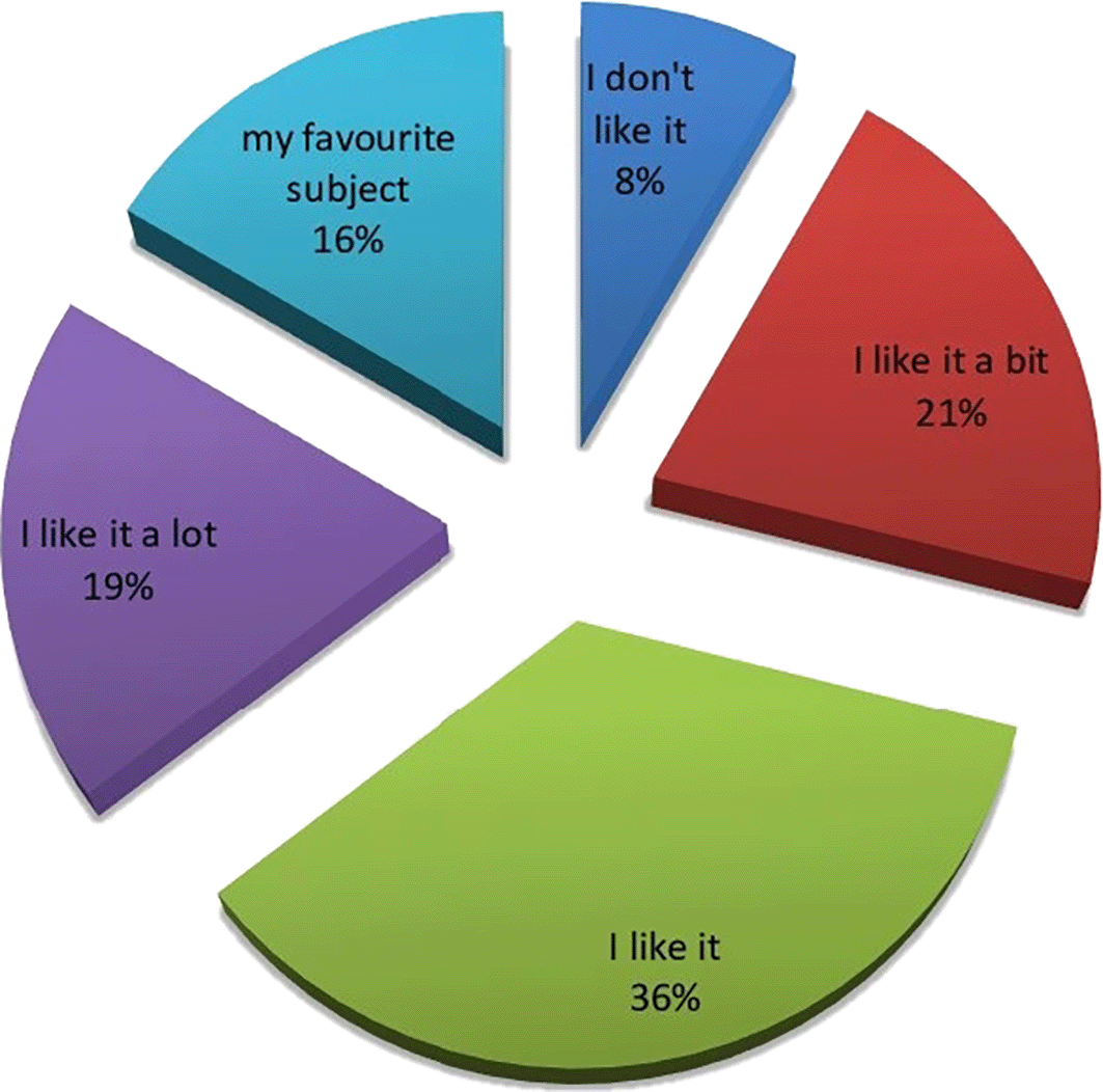 As shown in Figure 1, students’ preference for GS varies. However, the majority of the responses were positive. There are even students who consider the GS subject to be their favorite. A small minority of students did not seem to like the subject. A comparison between the percentages of responses “my favorite subject” and “I don’t like it” might hint at the likeliness of the subject.