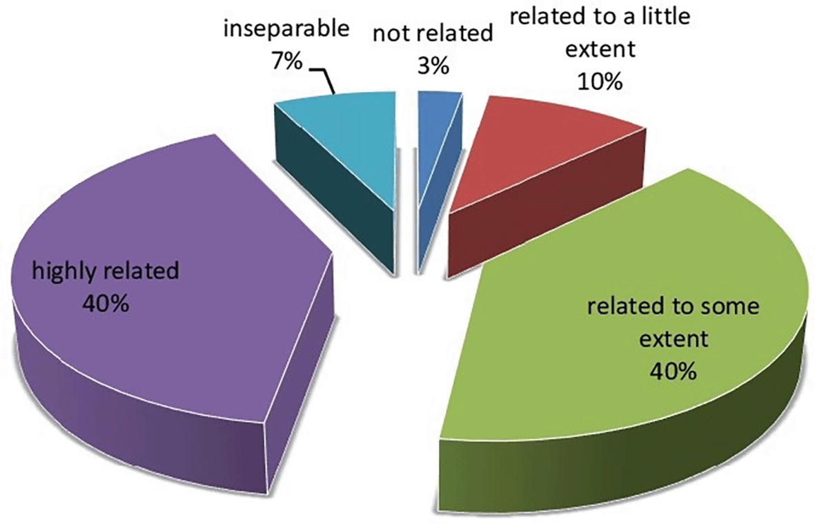 An overwhelming majority of the students thought GS was related to oral surgery, albeit to a variable degree. Figure 2 also shows that almost half of the students believed in the high relationship between the subjects, and a very small minority of students found GS irrelevant to OS.