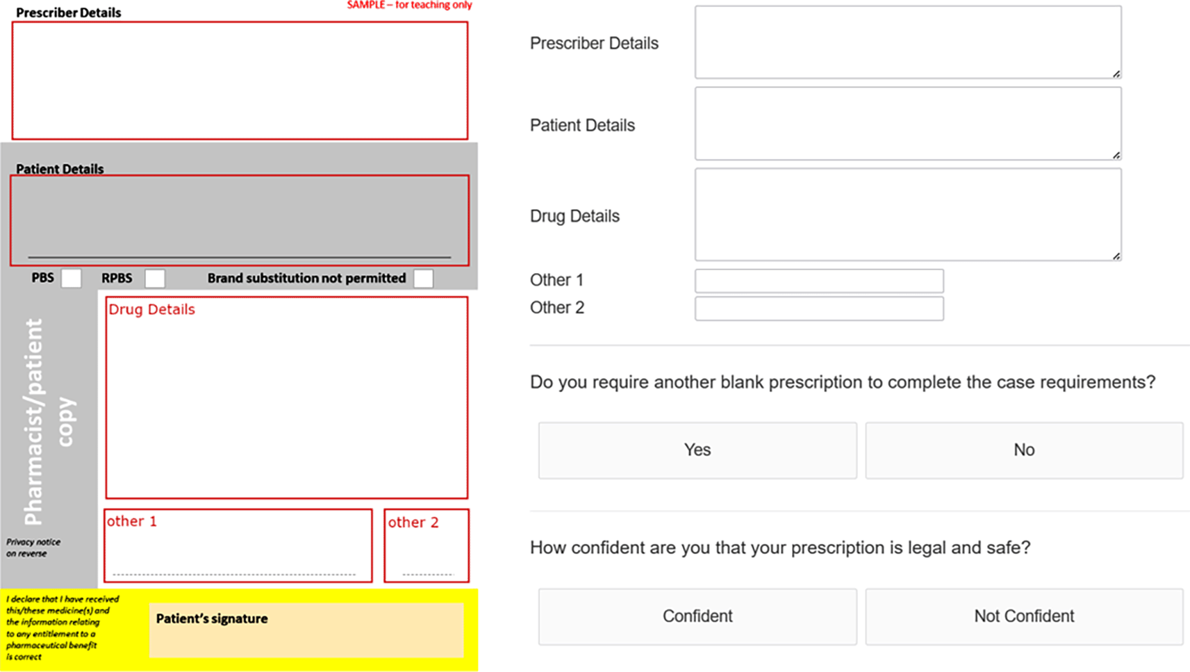 Early prescribing skills education for medical students may reduce the probability of potentially incorrect or unsafe prescribing habits.8,9 Australian medical education clinical practice standards explain prescribing as graduates’ ability to appropriately, effectively, and sustainably prescribe in line with quality and safety frameworks and clinical guidelines.13 This standard does not acknowledge adherence to local legal regulations when prescribing and does not recommend mandatory teaching or assessment criteria. In Australia, it is not yet mandatory for medical graduates to successfully complete a prescribing competency exam to gain conditional or general registration with the AHPRA. Unclear resources to guide the teaching and assessment of prescription writing can result in inconsistent and possibly unsafe prescribing practices among medical graduates.