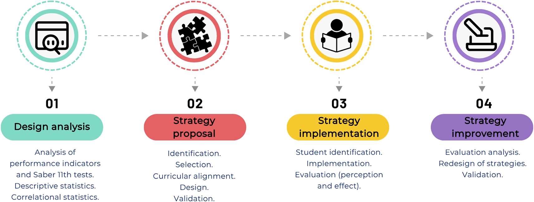 c) Evaluation of the impact of the implemented strategies on the academic success of the impacted students using formative evaluation processes.