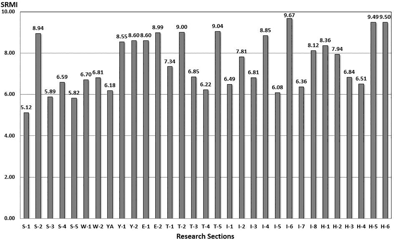 The Seoul Road Marking Index (SRMI) model developed in this study was applied to evaluate current road conditions. This figure presents the evaluation results.