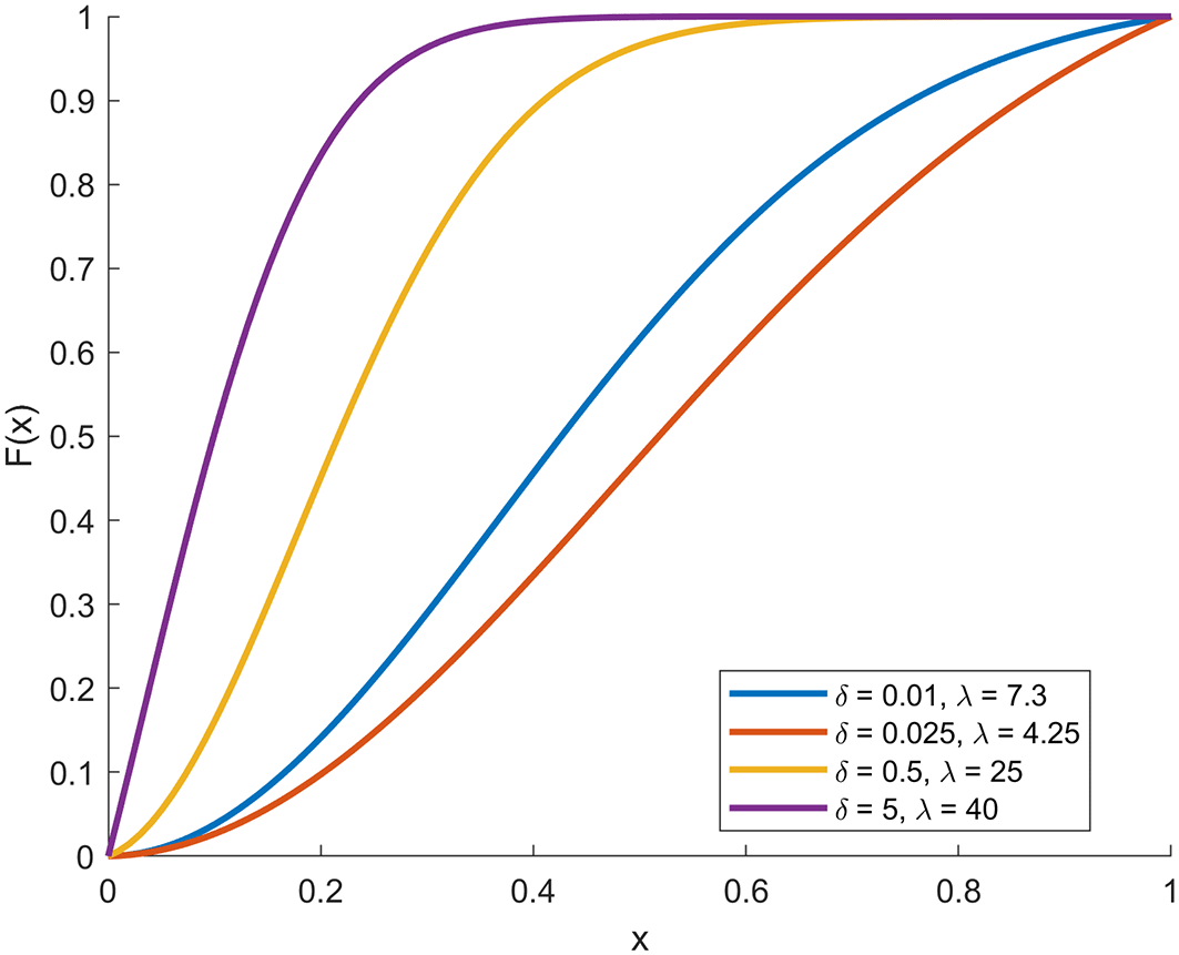 Now, if a random variable X~[0,1]-RTERD ( ), the corresponding (CDF) and (PDF) according to Eqns (3) and (4) are: