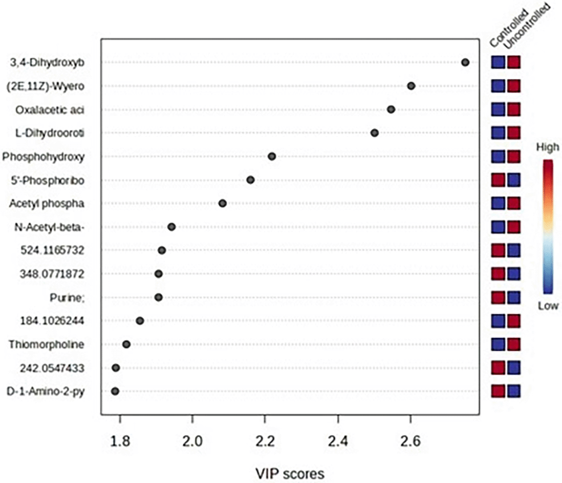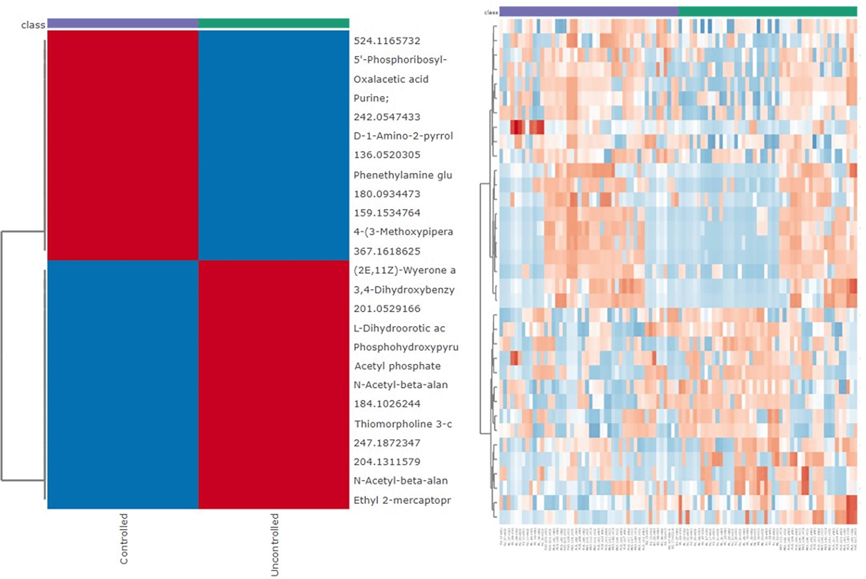 Figure 5. Urine metabolites screening between controlled and uncontrolled HbA1c groups.