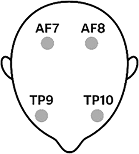 The authors of this study examined the EEGs of twelve patients, including five neurotypical controls (n = 5) and seven individuals with ASD (n = 7). Alpha, beta, delta, gamma, and theta bands are the five band-isolated time series that each participant's deployed sensors monitor and report. The data taken by the patients using a written ethical approval received by the ‘Arab Village for Special Challenges’ under approval number (ز/1810). Two sensors were positioned in front of the subject's head for this arrangement, specifically the AF7 sensor on the left and the AF8 sensor on the right, or above the eyes. However, as seen in Figure 1, two additional sensors, TP9 and TP10, were placed toward the rear, or close to the ears (TP9 on the left mastoid region and TP10 on the right mastoid region). The sensor data is reported and stored as channels 1, 2, 3, and 4 using Muse 2 technology. Before statistical testing and modeling, the sessions that some participants completed were combined inside the subject.