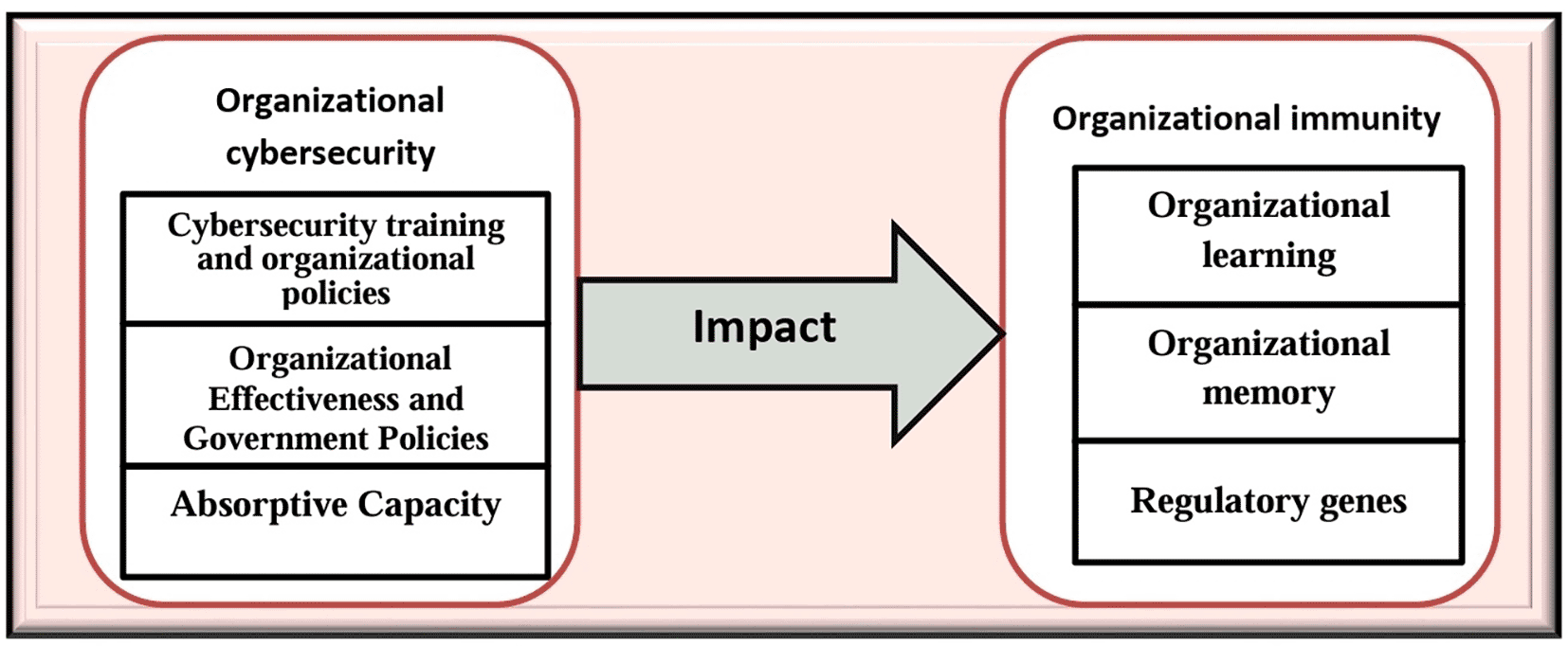 Organizational cybersecurity as an independent variable and organizational immunity as a dependent variable, as shown in Figure 1.