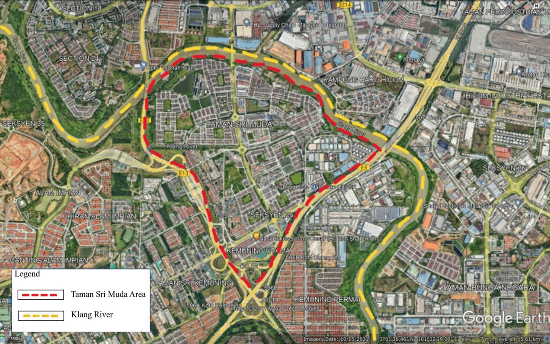 Urban flooding is a common issue in both developing and industrialised countries, including Malaysia (Ming Yuan, 2022). According to Samsuri et al. (2018), the common floods that occurred in Malaysia can be classed as monsoon flood and flash flood. The Northeast Monsoon generally causes flooding in the East Coast states at the end of the year, but this time the natural disaster stunned everyone by ‘storming’ the Klang Valley, which had previously only seen flash floods. There are many causes contribute to flood disasters (Ming Yuan, 2022). For example, a major flash flood in 2021, killed 50 individuals and left five others missing (Berita Harian, 2021). This is the largest number of fatalities in Malaysia’s flood disaster history. The Klang River flows through Shah Alam’s state capital region which it has multiple waterways, especially the Damansara River which flows through the Damansara Mukim and contributes to flash floods (Bin-Ismail et al., 2022). Due to the river water storage that exceeded the maximum allowable amount, excessive rainfall rates raised the water level and increased the river flow, leading to flooding in the Shah Alam region (Zulkifli, 2021).