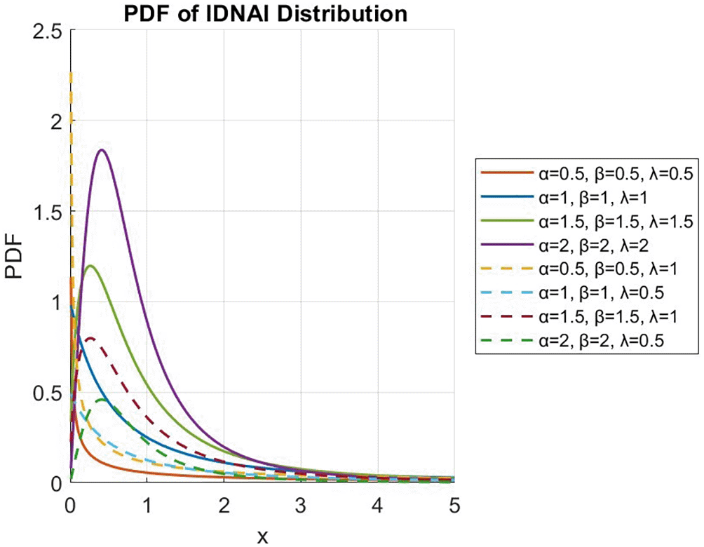 fIDNAI(x;α,β,λ)=(2αβλ)×(1+αβX2)(λ+1)forx>0andα,β,λ>0