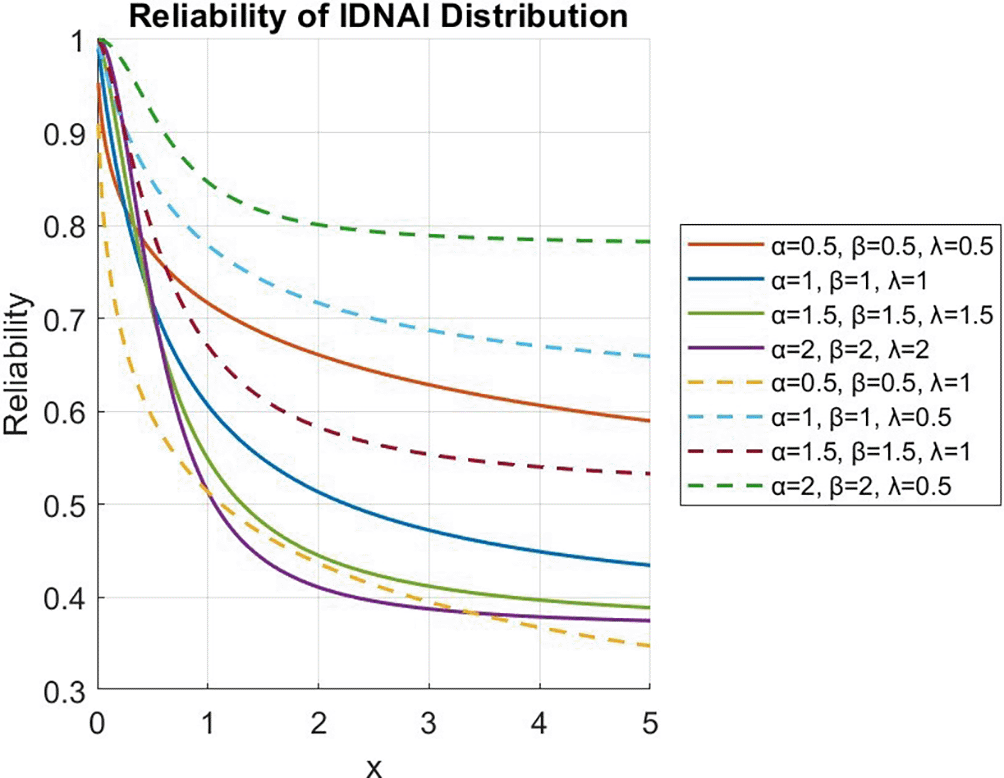 Additionally, based on Equation (16), the IDNAI distribution’s reliability function will be