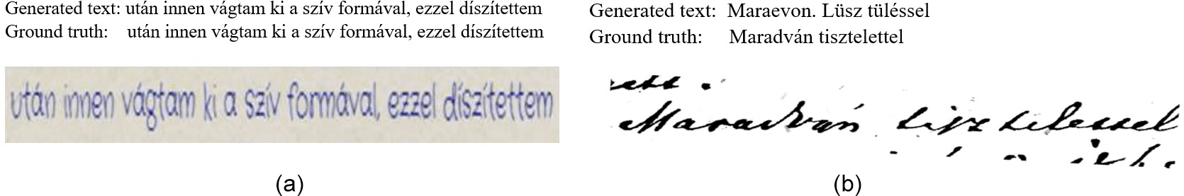 Building on this foundation, the main objective of this study is to fine-tune such language models by using OCR models pre-trained on an international dataset and then use transformer-based language models for the Hungarian language, such as GPT-2, BERT, PULI BERT, RoBERTa,4–7 with vision models such as Deit8 to enhance the fine-tuning results. Several approaches to enhancements have been explored in this study, the first of which was to use the weights of the pre-trained language model to initialize the decoder in the OCR model. The second approach used the sequence-to-sequence (Seq2Seq) approach to integrate the language and visual models in one OCR architecture. These models were fine-tuned after being pre-trained on letters from János Arany (Provided by ELTE DH-Lab) and evaluated according to the CER and WER metrics.9 The output of this thesis is an extensive study of more than 20 experiments targeting different approaches and detailing the performance increase caused by specific SOTA encoder-decoder pairs and architectural changes. Furthermore, the best-performing model is exported for inference, and a tool that could be used by the faculty of humanities researchers will be developed.