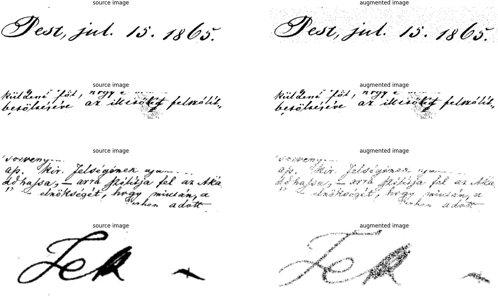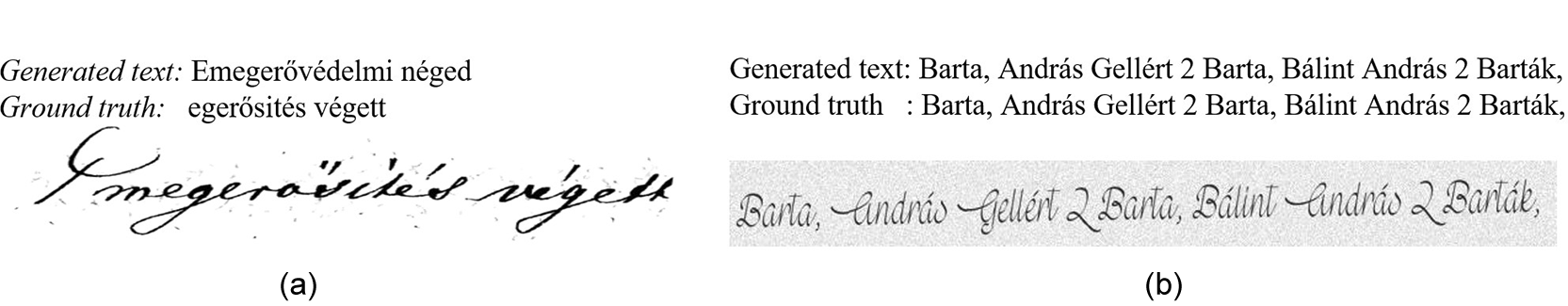 Table 1 shows the data we generated, most of them at the line level and a few at the word level. The data sources are the Hungarian and English Brown corpora[3]. The data used during training is the Hungarian version, with a small English base, where we took samples from this corpus by splitting it into small units and breaking long text into fixed sequences of length between 8 − 12 words per line and cleaning it by keeping only alphanumeric characters with some needed special characters in the first step. In the second step, we reconfigure a new toolkit that generates synthetic data by including Hungarian. All the required development steps can be found on the HuTRDG page of the tool.