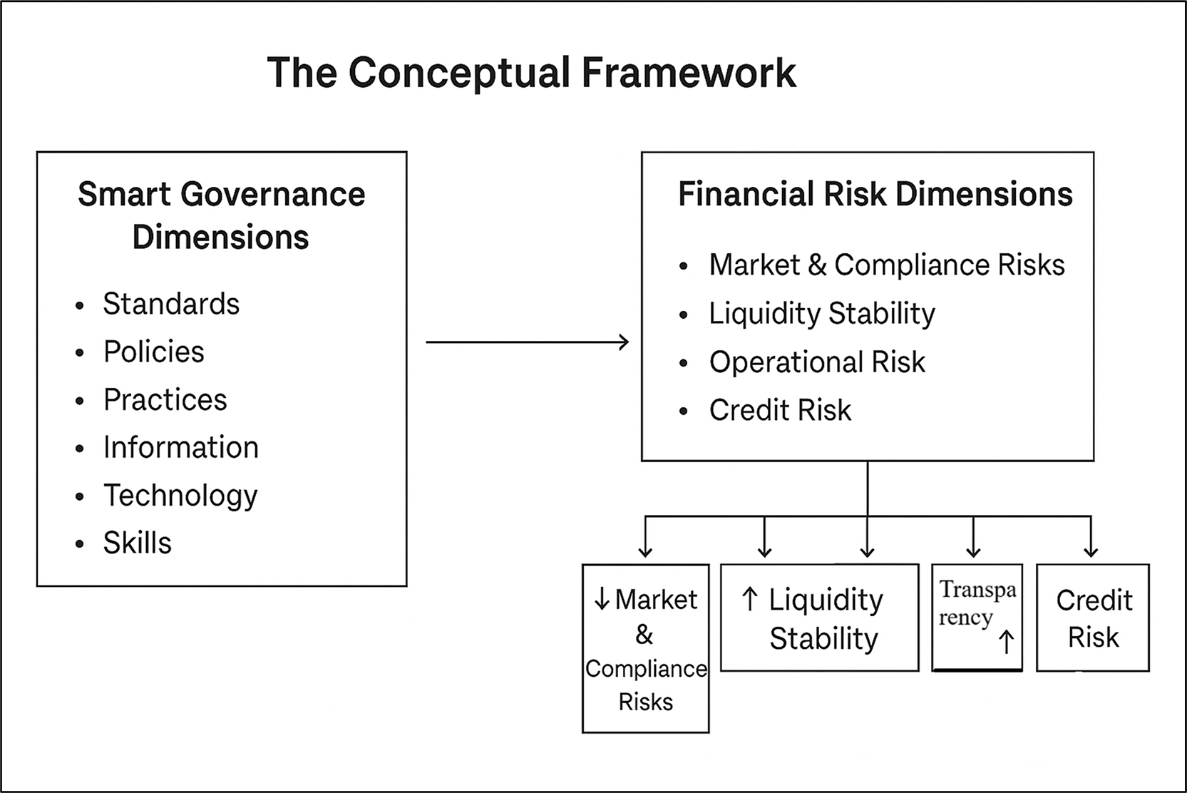 Intelligent management is a pillar towards achieving financial stability in the banking institutions. Besides paying the everyday regulatory compliance, it has a strategic management and responsive leadership integrated in it, which allows it to pass through the turbulent and changing financial environment. Of importance is the role of governance since it provides a means of balancing the interests of the shareholders, clients, and the regulatory parties through the establishment of transparency, accountability, and clearly stipulated procedural frames (Capriglione & Casalino, 2014).6 Information and communication technologies have become the main driver of economic growth in most countries (developing and developed countries) because they provide the ability to achieve successes in economic growth through economic development and to bridge the gap between countries. This is likely to reduce the economic turmoil that many countries, especially developing ones, have suffered from, and these countries become able to be part of the integration of economies around the world and bring in technologies that support their efforts to achieve economic growth (Awad, Obed, & Abed, 2020).13 However, banks continue to face significant obstacles, especially the need to have new forms of leadership and robust governance structures that will be able to effectively address the emerging financial risks and crisis. The human capital can work as a key to determinant here as it will help to reduce the cases of regulatory violations and strengthen the confidence of people in the banking system. (U-Din, 2021).22 Regulatory structures are required but excessive dependence on them may hamper the organization flexibility. Thus, there is a new demand of new and technology-driven forms of governance that extend past the traditional designs (Bellomo & Pellerone, 2018).3 Financial risk management, in its turn, is a set of strategic actions, which are undertaken to assist in minimizing the potential losses and continue running business in case of uncertainty and market variability. Artificial intelligence (AI) has transformed this area and provided predictive analytics, robotization of decisions, and data-driven insights that enable financial institutions to strive to achieve the realization of goals with less exposure to risk and fewer regulatory penalties (Sari & Indrabudiman, 2024).20 The process of the introduction of artificial intelligence into the system of governance and risk management, in its turn, is transforming the global financial services sector by making the operations, strategic vision, and the customer experience more effective. It is imperative that AI-oriented systems of governance are developed in both instances of systemic risks reduction and enhancing financial resilience. It is on this basis that the present research seeks to articulate how the sophisticated systems of governance can reduce the financial vulnerabilities of the Iraqi financial institutions under the saliency of the artificial intelligence. It will do two things: firstly, to single out the key risk factors with which the banking sector of the Iraqi economy is confronted; secondly, to approximate the possibility to alleviate the dangers to a considerable extent through AI-based governance policies. Moreover, the study sheds light on the existing gap in the academic literature that fails to establish the connection between the three concepts of smart governance, artificial intelligence, and financial risk stewardship in the context of the emerging economies.