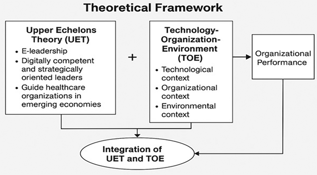 By integrating UET and TOE, this review establishes a conceptual foundation linking leadership behaviour and workforce competencies to measurable organisational performance. The combined theoretical grounding highlights the mechanisms through which digital capabilities can be effectively leveraged, offering both explanatory and practical insights. This approach not only guides the synthesis of existing literature but also informs strategies to enhance e-performance in post-COVID healthcare organisations in emerging economies, where structural and resource limitations often challenge digital transformation efforts.