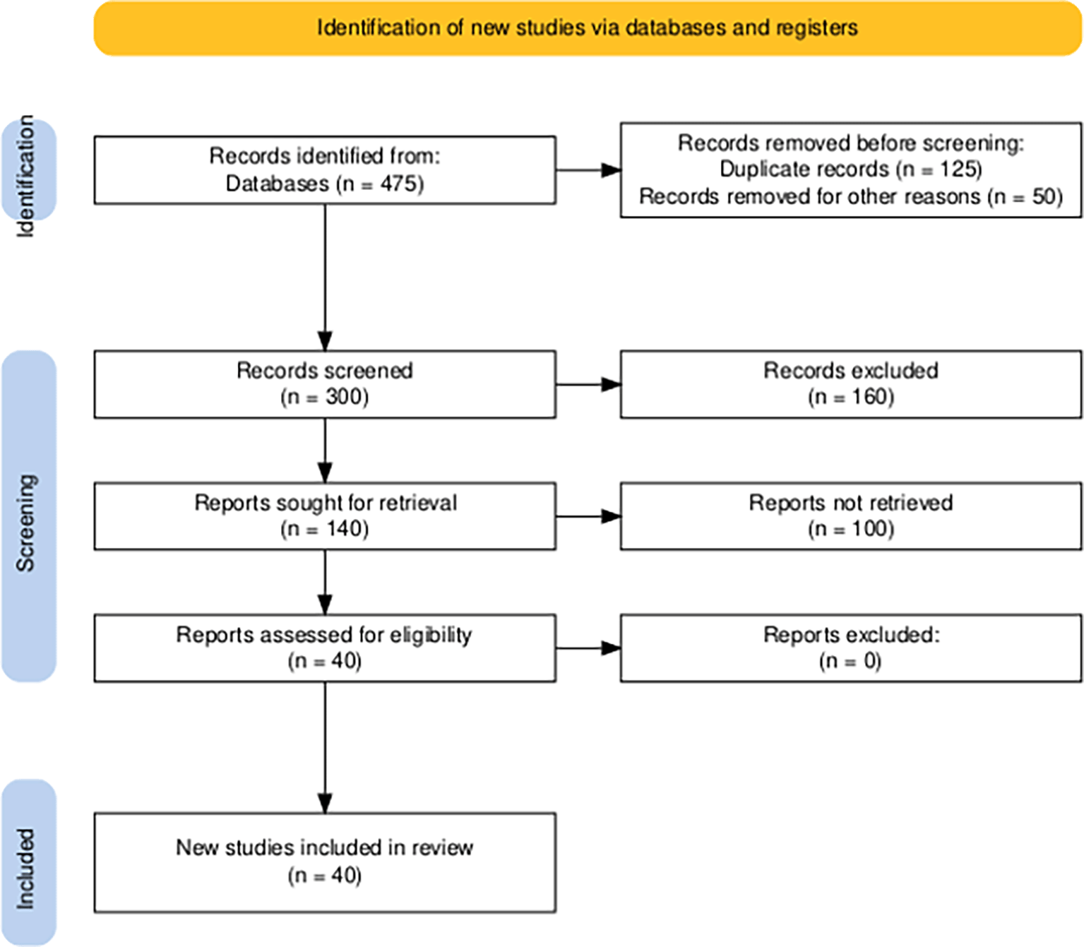 Figure 2 displays a PRISMA (Preferred Reporting Items for Systematic Reviews and Meta-Analyses) chart illustrating the systematic literature selection process for this study. Of the 475 documents identified through the scientific database search, 175 records were eliminated prior to the screening stage, comprising 125 duplicates and 50 documents that were irrelevant for other reasons (such as limited access or not meeting the required scientific publication format). Thus, 300 documents entered the initial screening stage. During the screening stage, 160 articles were excluded for not meeting the topic or objectives of the study, leaving 140 documents deemed suitable for further review. However, some reports were inaccessible due to limited access or incomplete formats, resulting in only 40 articles being eligible for eligibility review. After further assessment, no articles were eliminated during the eligibility stage, resulting in a total of 40 scientific publications being included in the final stage as the primary source of this systematic review.