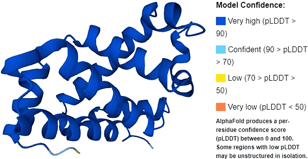 The protein structure of β-globin gene is shown in Figure 2. Full-length amino acid translation consisted of 174 amino acids. The β-globin gene consists of a nucleotide encoding a protein called beta-globin. β-globin is a component (subunit) of a larger protein called hemoglobin, which is located inside red blood cells. In adults, hemoglobin consists of four protein subunits: two subunits of beta-globin and two subunits of a protein called alpha-globin, which is produced from another gene called HBA (both HBA1 and HBA2). Each of these protein subunits is attached (bound) to an iron-containing molecule called heme, and the iron in the center of each heme can bind to one oxygen molecule. Hb within red blood cells binds to oxygen molecules in the lungs. These cells then travel through the bloodstream and deliver oxygen to the tissues throughout the body. A full-length protein will also have normal function, whereas a mutation in the gene will lead to disease.
