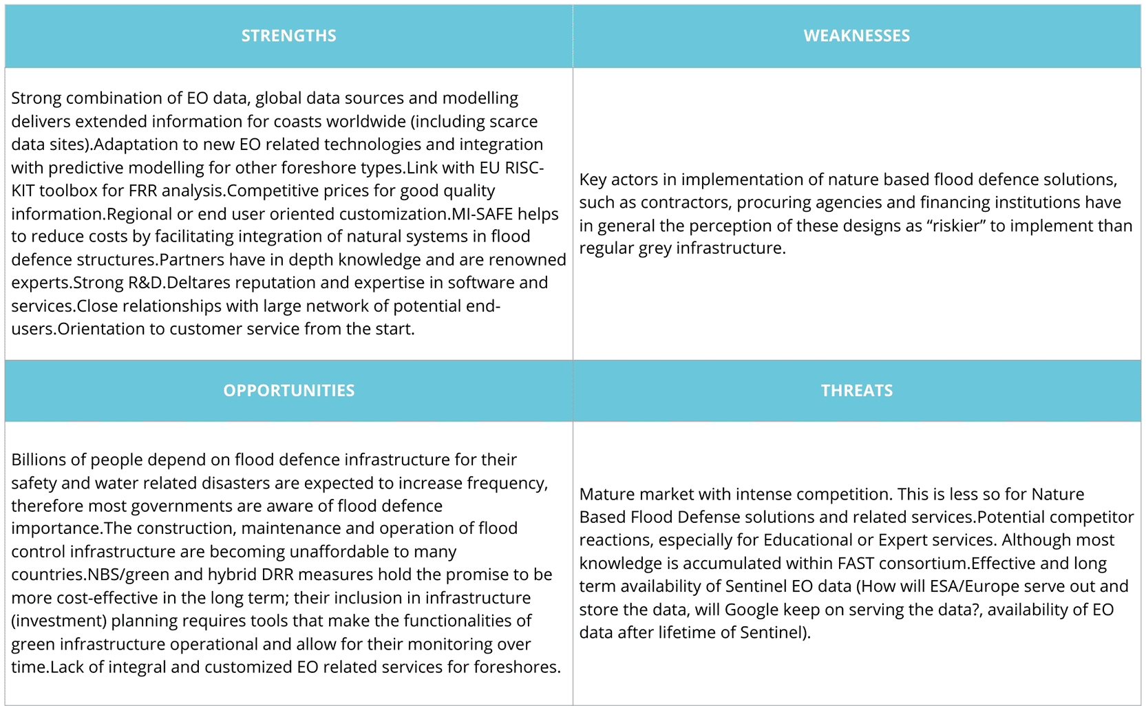 The FAST project has successfully developed the MI-SAFE package. This innovative tool utilises Earth Observation and modelling to quantify the role of vegetated intertidal flats in reducing flood and coastal erosion risk. The present manuscript evidences the evolution of the business model, which has been developed into a Platform as a Service, integrating science, OT technology and end-user needs.