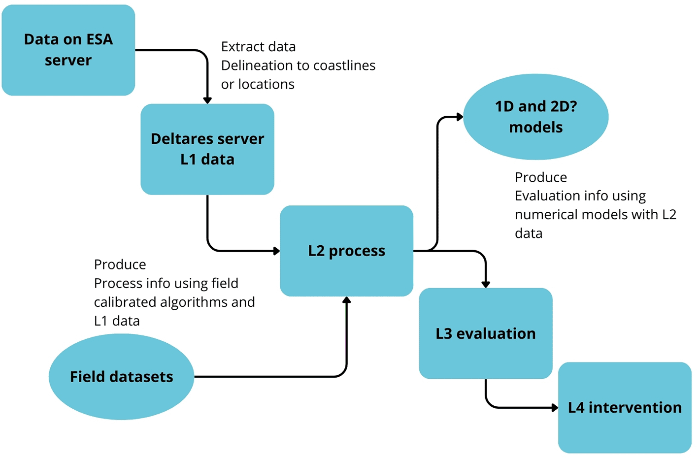 The FAST project sought to address these gaps by leveraging Earth Observation (EO) capabilities, evidence, and actionable information, particularly from the European Copernicus programme. Deltares6, a world-leading Dutch institute specialising in applied water, subsurface, and infrastructure research, as well as the development of software and forecasting systems, assumed a pivotal role in the project, serving as the project coordinator. The project also involved researchers from the University of Cadiz (Spain), the University of Cambridge (UK), GeoEcoMar (Romania) and NIOZ (The Netherlands). The FAST project adopted a multidisciplinary approach to address coastal management challenges. It involved combining remotely sensed data, particularly from EO sources such as Sentinel satellite imagery, with field-collected data. This approach was applied to vegetated intertidal flats in four EU countries: the Netherlands, the UK, Romania and Spain. These intertidal flats were meticulously mapped, and a comprehensive study was conducted to ascertain the impact of their distinctive characteristics on wave energy and erosion. A plethora of open-format information on elevation (topography and bathymetry), vegetation, water level and wave statistics was collected, reclassified or produced. The integration of these layers with intensive scientific fieldwork facilitated the establishment of relationships between elevation and vegetation properties, as well as water level and wave dynamics. These relationships were utilised to calibrate the open software wave model XBeach, thereby enabling the estimation of the effects of intertidal flat vegetation on wave attenuation and breakwater overtopping. The dissemination of this information was facilitated by OpenEarth, an open-source initiative dedicated to archiving, hosting, and disseminating data, models, and tools for the benefit of marine and coastal scientists and engineers.