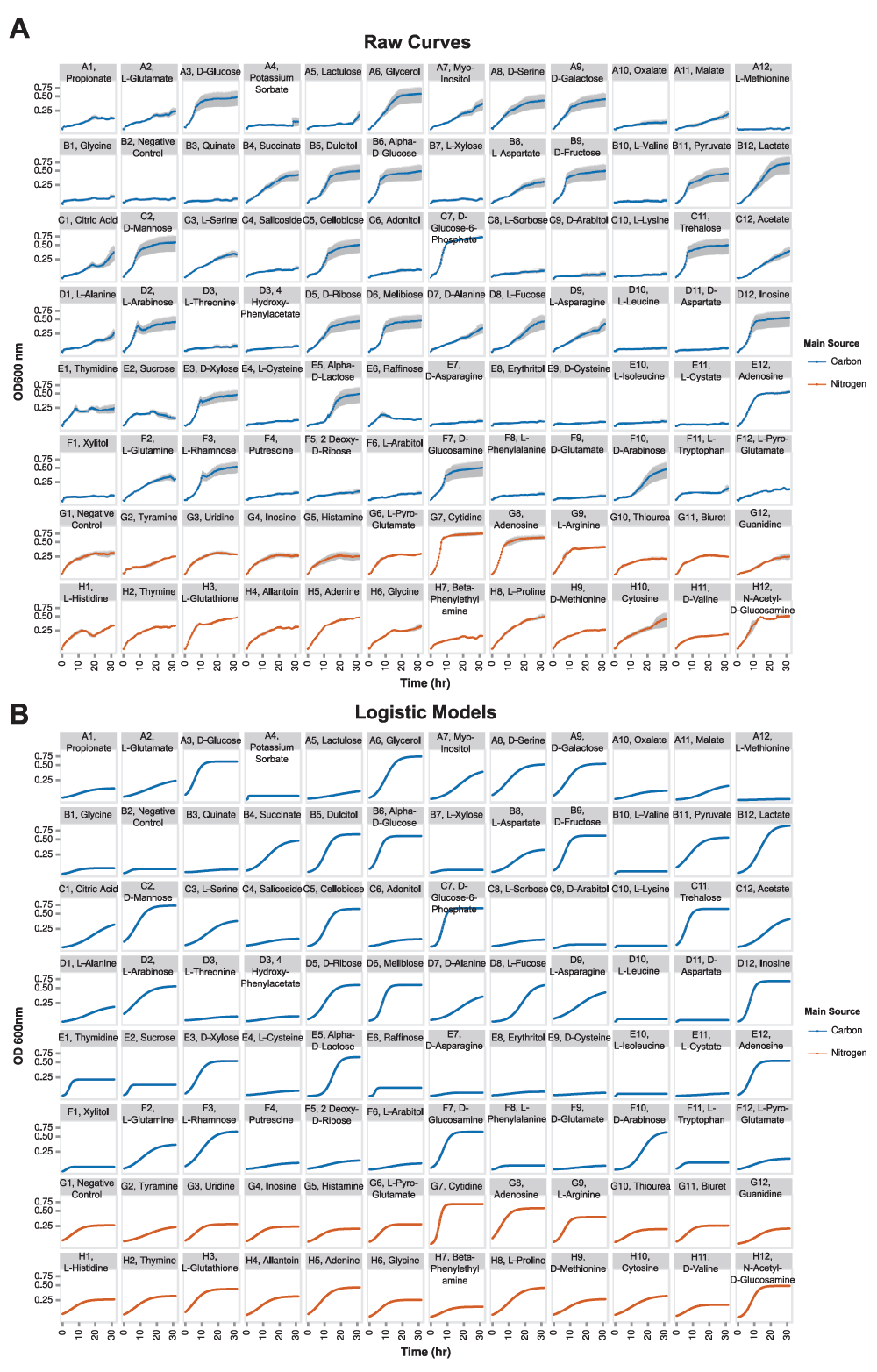 Question: In the plate format for growing the cells, you indicate that plates are sealed with a PCR grade plate film. What does this do to the aerobic/anaerobic state of each well? Is there any opportunity for gas exchange during incubation? Also, is there any shaking going on during incubation on the plate reader? It might be worth mentioning about caveats of usage of carbon/nitrogen sources being limited to these conditions, which aren't exactly known.