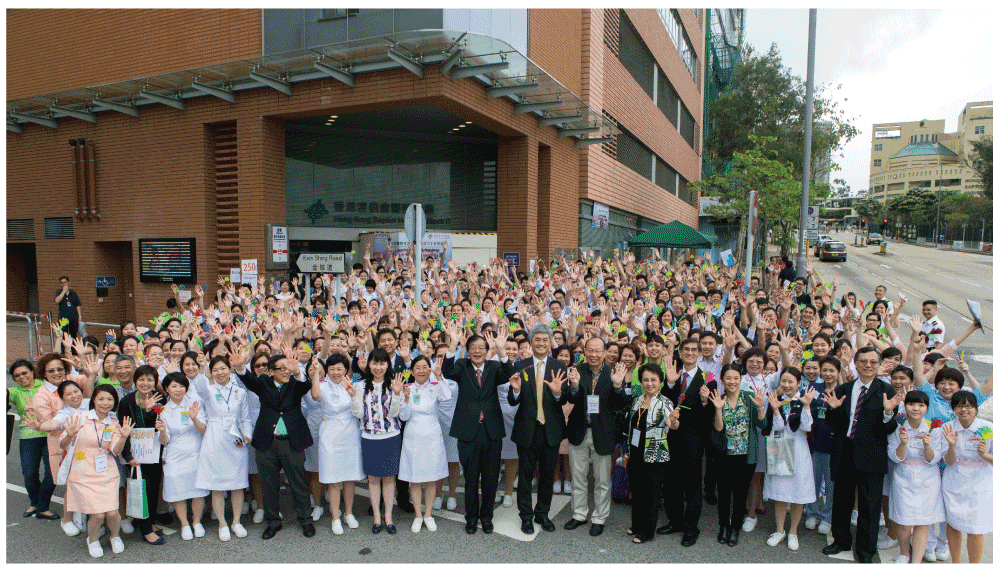 Figure 3. Celebratory photograph after completion of the Hand Sanitizing Relay world record at Hong Kong Baptist Hospital.