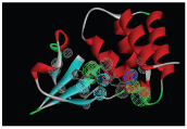 Receptor-ligand pharmacophores for the VP35 protein were generated from crystal structures (4IBB, 4IBC, 4IBD, 4IBE, 4IBF, 4IBG, 4IBI, 4IBJ, 4IBK) in the protein data bank PDB. Pharmacophores were constructed using the receptor-ligand pharmacophore generation protocol in Discovery Studio version 4.1 (Biovia, San Diego, CA) with a maximum number of pharmacophores (10), minimum features (4), and maximum number of features (6) as are described elsewhere20.