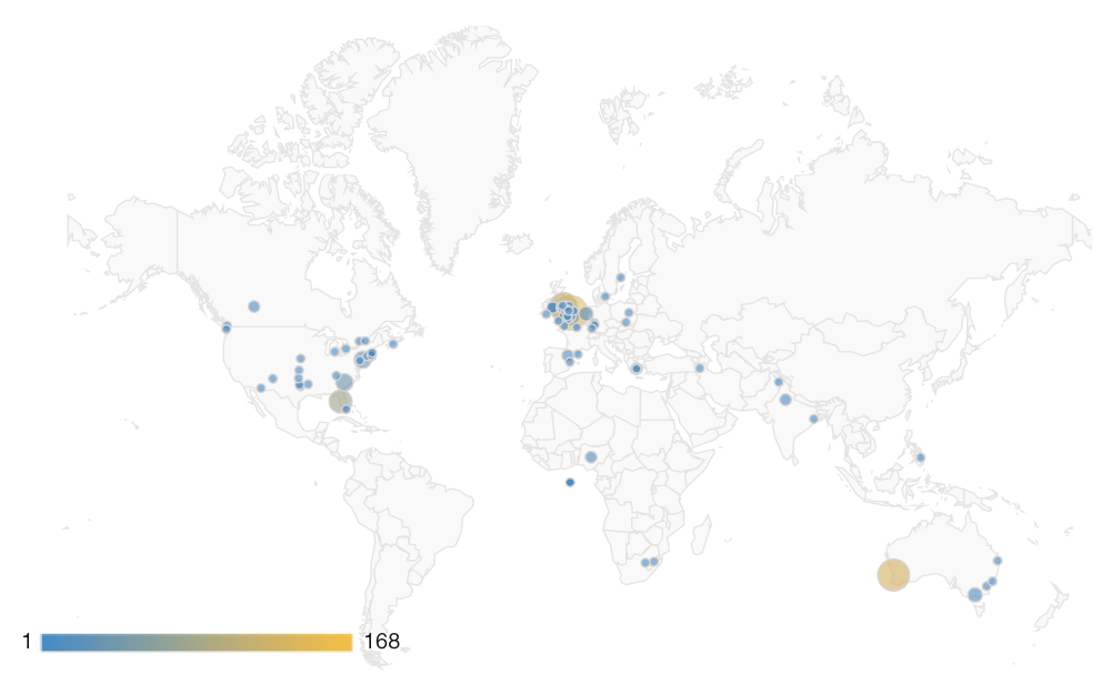Figure 1 depicts a world map with the locations of persons that contributed to the ASTPC. Over 80 posters were submitted from Argentina, Australia, Brazil, Canada, Ireland, Italy, Mauritius, the UK, and the USA, with the highest number of contributors coming from European countries. From the diversity shown in Figure 1, it can be inferred that social media can be used to improve the accessibility of the poster by making it freely accessible across the world in a matter of minutes. This further presents opportunities for researchers to exchange comments in the form of tweets, a format that is designed to be both clear and concise. Such communiqués encourage researchers to think more directly about their research, as they must communicate their point in 140 characters or less. This concise form of communication could help both students and academics to communicate more effectively, particularly students who sometimes struggle to differentiate between description and analysis (Chanock, 2000).