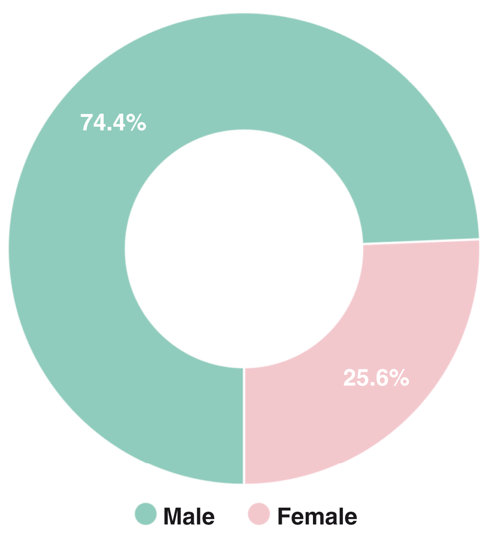 Another important piece of information relates to the gender distribution at the Twitter conference. According to the RSC membership department, 27.7% of their members are female and 72.3% male, representing an uneven distribution of members by gender. Figure 4 displays the contributions of the ASTPC by gender, with 25.6% of contributions made by females and 74.4% by males. The fact that there is no significant difference between the RSC’s overall membership and the contributors at this event shows that the social media format is not conducive to stimulation of more or less average contributions based upon the gender of the participant. The level of participation in terms of registrants was different to this, however, as 59.6% of the registrants were female. Therefore, whilst a large proportion of females were willing to engage with the competition (a significantly higher proportion than would be expected based on the RSC membership), the discussions appeared to be dominated by male contributors.