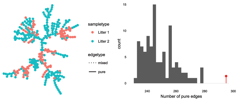 el <- phy_tree(pslog)$edge el0 <- el el0 <- el0[nrow(el):1, ] el_names <- c(short_names, seq_len(phy_tree(pslog)$Nnode)) el[, 1] <- el_names[el0[, 1]] el[, 2] <- el_names[as.numeric(el0[, 2])] unadj_p <- treePValues(el, abund, sample_data(pslog)$age_binned)