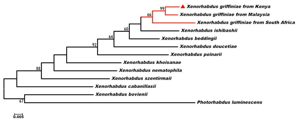 Xenorhabdus griffiniae has only previously been isolated from Indonesia31, Malaysia32 and South Africa33; therefore our data strongly suggest a new strain of X. griffiniae originating from Central Kenya.