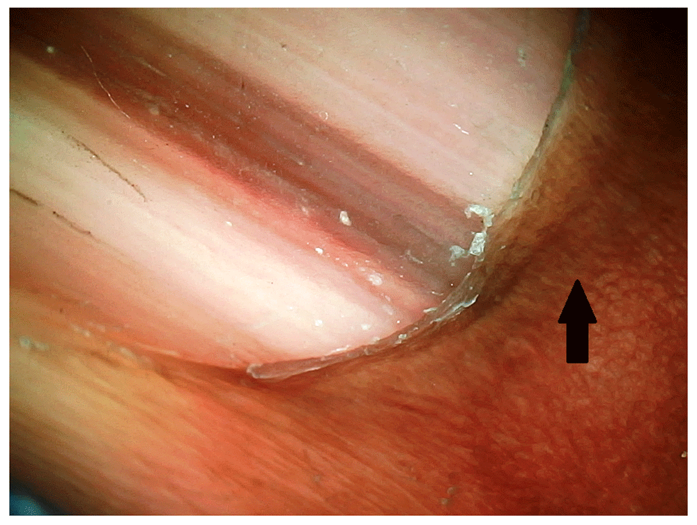 In our experience, LP involving the cutaneous aspect of the lip displays the typical WS, whereas the mucosal aspect shows WS resembling LLAs. Dotted and linear to curvilinear vessels were visible at the junction of the white and red areas, akin to the vascular pattern observed in dermoscopy of cutaneous LP. The fourth feature from the tongue lesion was blunting of lingual papillae. This feature may depend on the morphological sub-type of OLP.