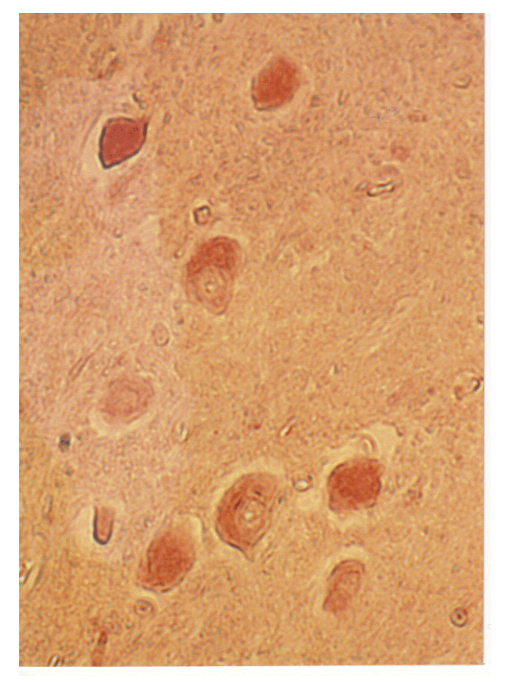 Study of brain specimens had been cleared for ethical agreement by the National Research Ethics Committee for Oxfordshire UK, rec no.: 07/H0606/85. The brain samples from human autopsy material were obtained from the pathology collections of the John Radcliffe Hospital, Oxford UK, and from the former Armed Forces Institute of Pathology, Washington DC, USA. These institutions approved the use of the tissue for research, and they were satisfied that no further ethical approval was required. In the case of the material from the UK, the principal author holds the “Release of Tissue Disclaimer” from the Thomas Willis Oxford Collection, at the Neuropathology Department John Radcliffe Hospital, Oxford.