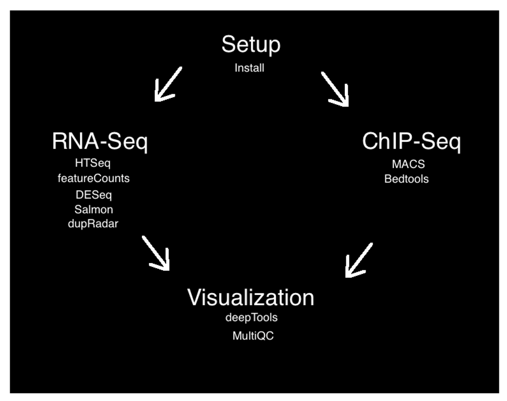RNA-Seq, ChIP-Seq, alignment, differential gene expression, peak-calling, education, tutorial, pipeline