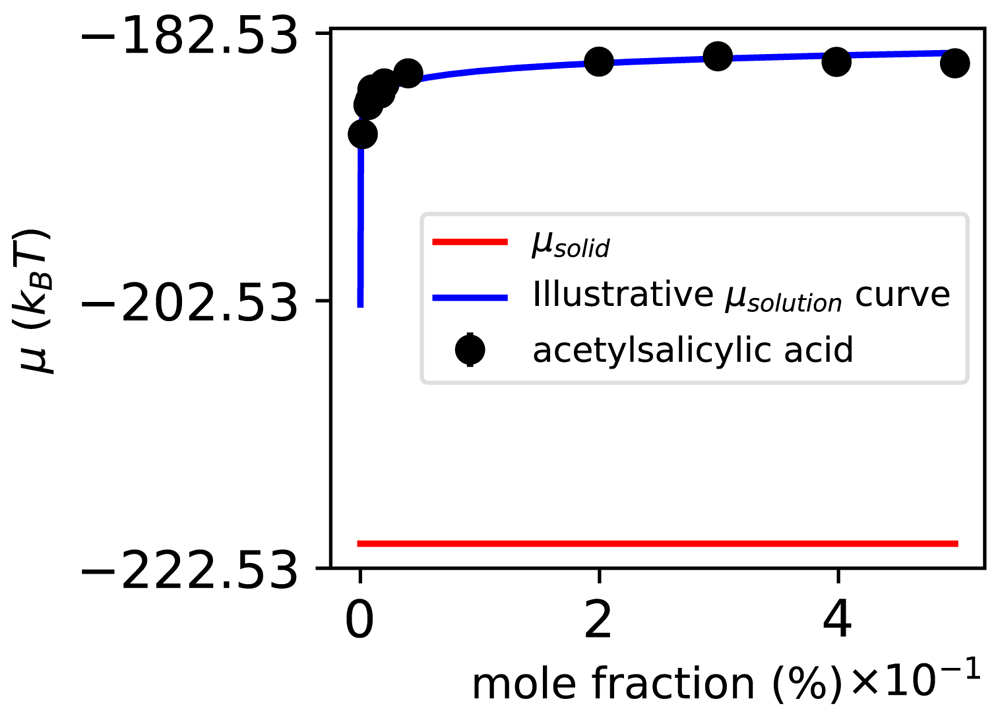 Another critical component of computing the solubility of a compound is estimating the chemical potential of a solute in solution, since the solubility point is the concentration at which the chemical potentials of compound in the two phases are equal.