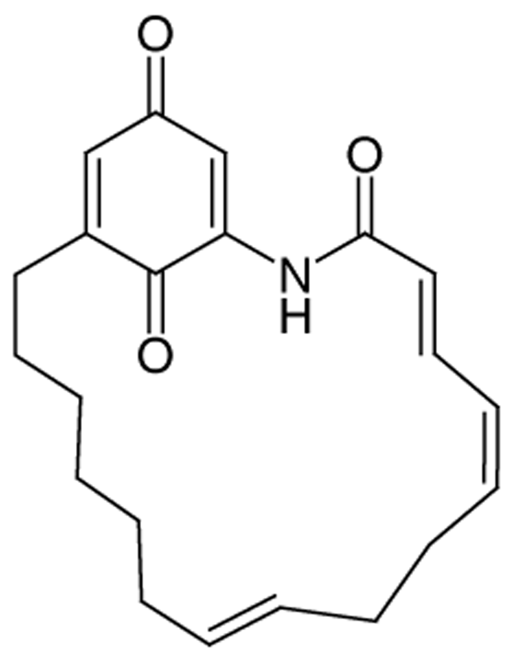 The carbon atom C-11 and C-17s of the macrocycle of the geldanamycin are numerically indicated.