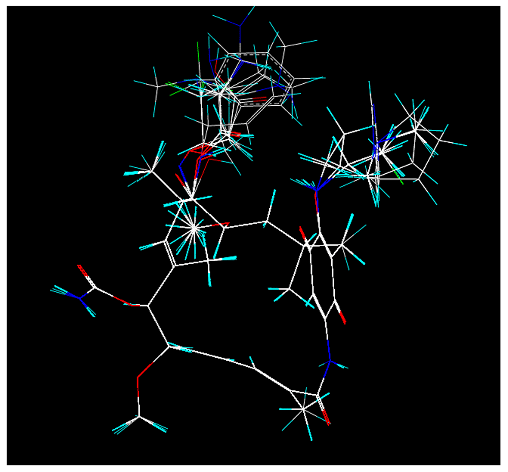 The TGSA method considers the molecules as rigid bodies, so there is no flexibility in the structure (nothing of rotation and vibration in the distances of the angles in the box). This is designated by the operator in the homogeneous set of molecules and does not yield good results with different molecular structures; this comes from the alignment pair that is restricted with the common recognition skeleton. In contrast, this common recognition of substructures produces a coherent alignment with chemical intuition. TGSA-Flex program was used to perform this procedure because is simple and has low computational requirements32–36.