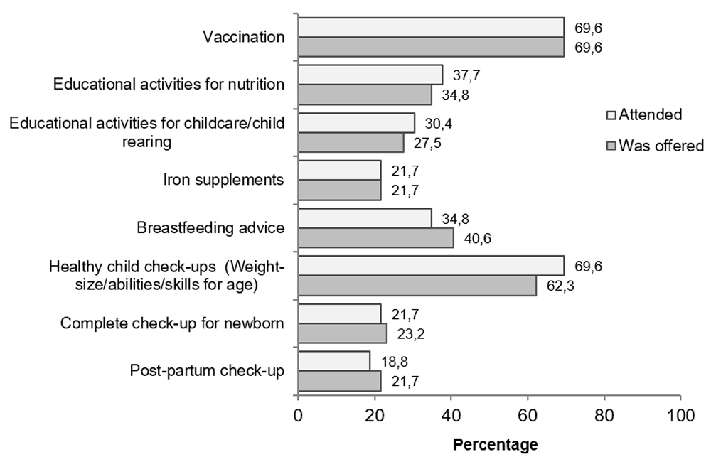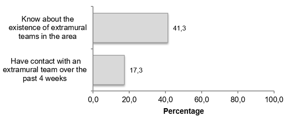 The findings were similar for extramural activities offered by the Health for Peace project, with a small percentage of families having received visits (17%), although a large percentage of households knew about the existence of these extramural teams.
