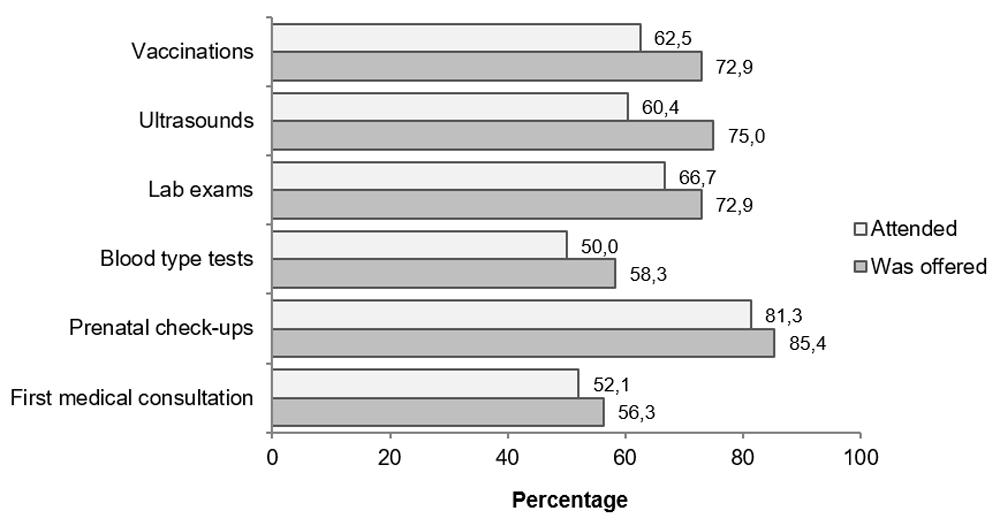 Other studies that have been performed in Colombia have reported similar findings. In Manizales, a household study was conducted of users in the contributory and subsidized systems in order to determine the factors that influenced the use of promotion and prevention programs. In general, it found the frequency of use of those programs to be low, with only 38% of the households surveyed knowing about them. For those who knew about the programs that were available in the subsidized system, vaccination was most well-known and activities for adults were least well-known31. Another study with a similar aim was performed in Medellin, which evaluated the barriers and strategies related to different actors having access to promotion and prevention services. It found that “the users’ lack of knowledge about their rights and responsibilities is a barrier to accessing health services, a lack of information results in users not requesting services about which they do not know they have a right, or in activities involving others that saturate the system,” such as overuse of emergency services32. That supports our findings on promotion and prevention services and extramural activities for the population of ex-combatants, with similar percentages of offerings and access for those under 1 year of age and pregnant women, in which knowledge about these programs promotes soliciting them and actual contact coverage.