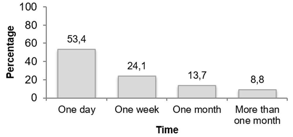 In contrast, 25% said that the waiting time was long or very long (over 2 hours for 13.0% of cases), 21.6% did not receive a diagnosis from the professional who provided the service, and 23.9% could not obtain some or any of the medications that were indicated. The reasons mentioned for not being able to obtain the medications were: they were not available at the IPS (service provider institutions) pharmacy or the pharmacy was not open at night or on the weekend, the place where they are obtained is far from where they received the health services, and the medications were not covered by their benefits plan (Table 2).