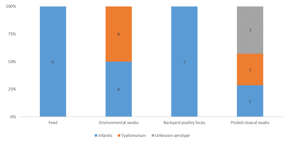 At the same time, the intervention of public health authorities may be required in order to ensure the participation of a fully representative range of poultry businesses in future research. This study depended on the voluntary consent of farm owners to providing samples, which may have led to selection bias. In order to establish a thorough program of surveillance, all potential sources of Salmonella infection in the region need to be made accessible to researchers.