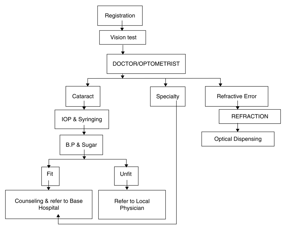 c. Hospital arm: patients presenting to comprehensive semi-private OPD (with similar socio-economic status to camp patients) (Figure 3)