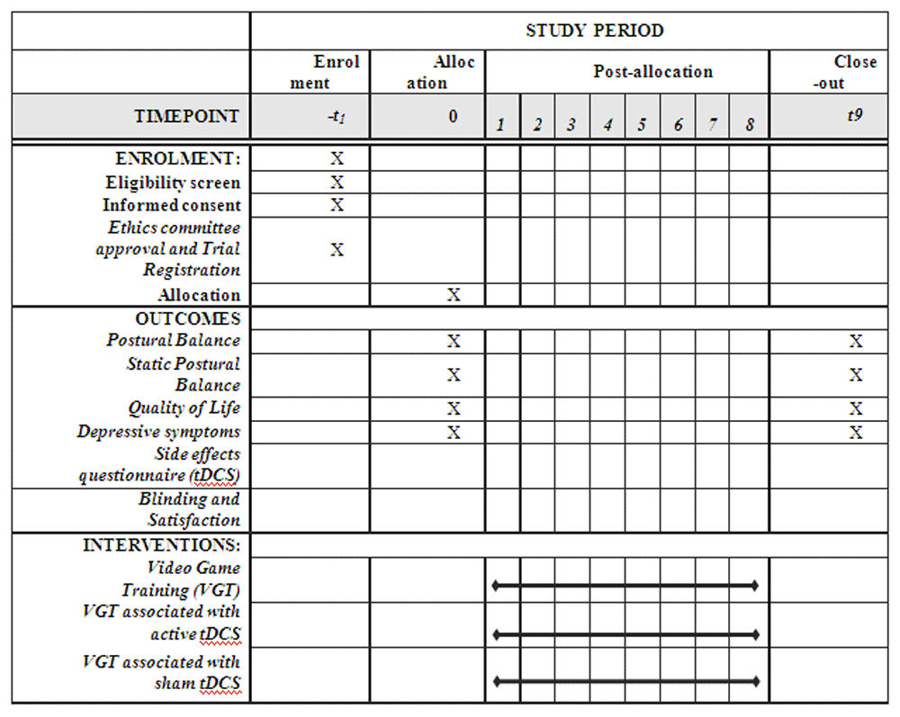 Harvard Dataverse: SPIRIT checklist for ‘Protocol for a controlled, randomized, blind, clinical trial to assess the effects of transcranial direct current stimulation associated with balance training using games in the postural balance of elderly people’. https://doi.org/10.7910/DVN/OJBWHJ