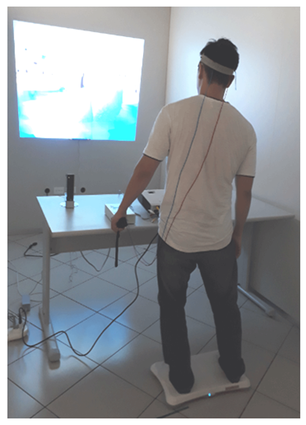 Group 2: Active group (balance training with video games associated with active tDCS);