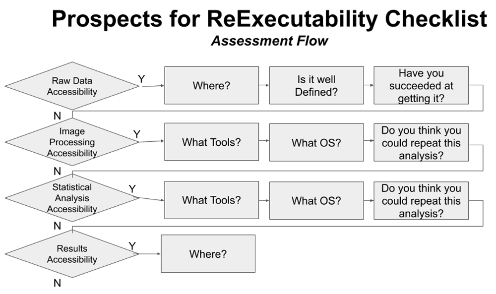 Some have argued that the starting point for the structured exploration of the generalizability of a specific finding (and thus a cornerstone to the quest for reproducibility) lies in the original finding itself being re-executable (Ghosh et al., 2017; Kennedy, 2019). Starting from the re-execution of a finding will allow for the systematic exploration of the generalizability of that finding, over changes in data and analysis. To date, when new studies find different findings from prior studies, it is too easy to simply argue that differences in the subject population or analysis workflow differences account for the discrepancy.