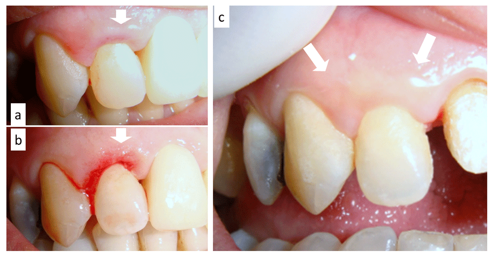 The overall clinical benefits of the erbium:YAG laser allows flapless CL to be simplified, even in difficult cases. The total absence of laser-related thermal injuries to the oral hard and soft tissues leads to highly predictable clinical results, and this is important in the treatment of the anterior teeth for aesthetic purposes. However, a good knowledge of laser-tissue interaction principles, sufficient experience on laser use and, obviously, familiarity with the general and basic guidelines of oral/periodontal surgery are mandatory to achieve desirable clinical results.