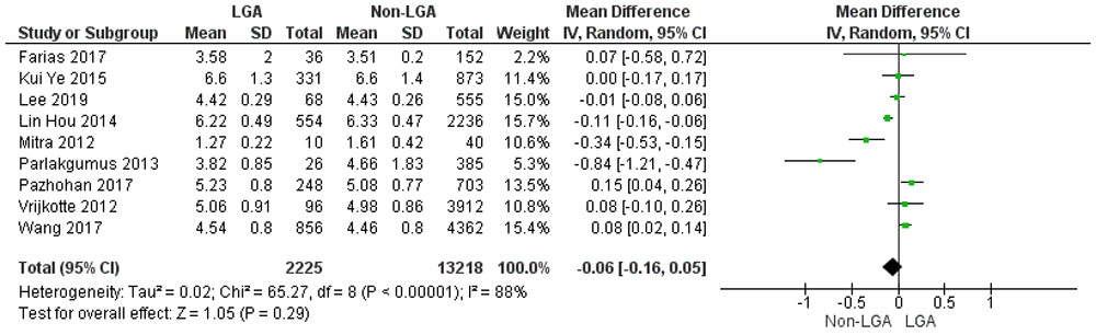 | Non-LGA | 2.14± 0.63 | 1.61 ± 0.42 | 1.77 ± 0.25 | 2.95 ± 0.25 | 1.02 ± 0.31 | |