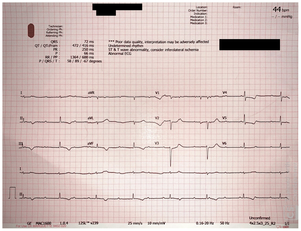 A 24-year old Asian man was admitted the cardiology department with CHB and hypotension. The patient was a chef and had a history of tongue cancer for six months and had undergone 30 cycles of radiotherapy. A week before, the patient came to the emergency department (ED) because of oral bleeding and general weakness. The patient denied any history of cardiovascular disease.